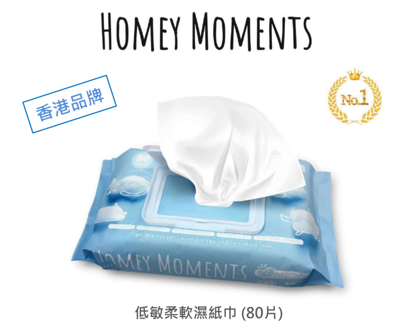 HOMEY MOMENTS 低敏柔軟濕紙巾(80片裝) - 不含酒精及香料 - 不含致癌物質Paraben - 低敏,質地柔軟,堅韌 - 添加蘆薈精華 - 添加Vitamin A & E